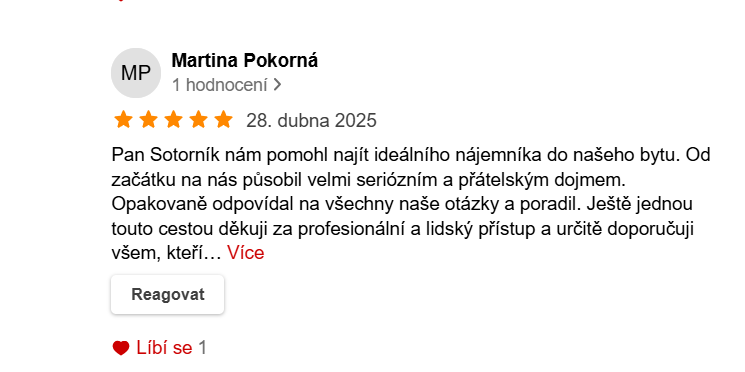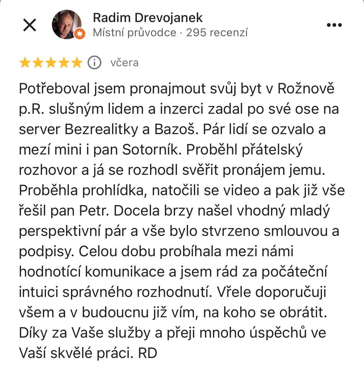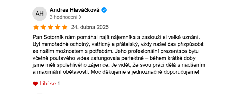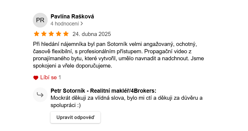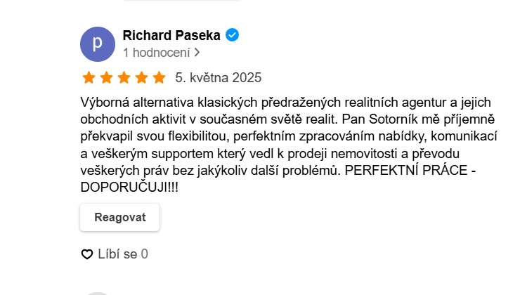 Z mého pohledu jsou nemovitosti po zdraví a rodině tím nejcennějším, co lidé ve svém životě vlastní a s tímto vědomím ke svým klientům přistupuji s nejvyšší možnou odpovědností za služby, které poskytuji.